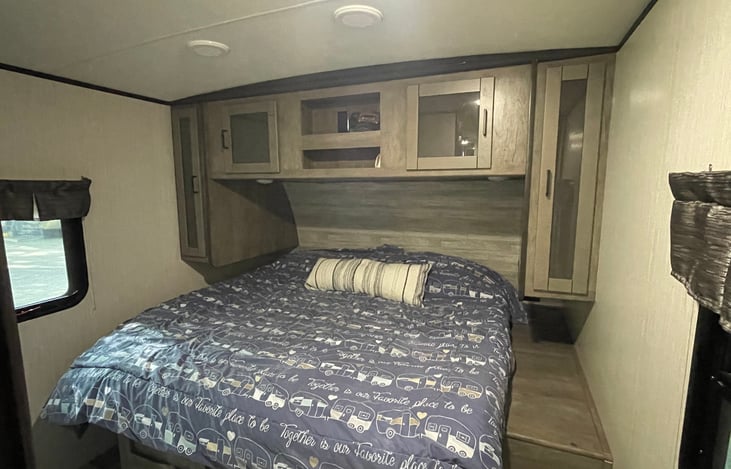 Great trailer for families as well as adult trips for the weekend. Master bed is a King, the couch and dining room table fold out to Queen size beds. Back bedroom has 2 Twin beds with plenty of room for storage. Kitchen is very user friendly as well as great for entertaining if weather gets bad.