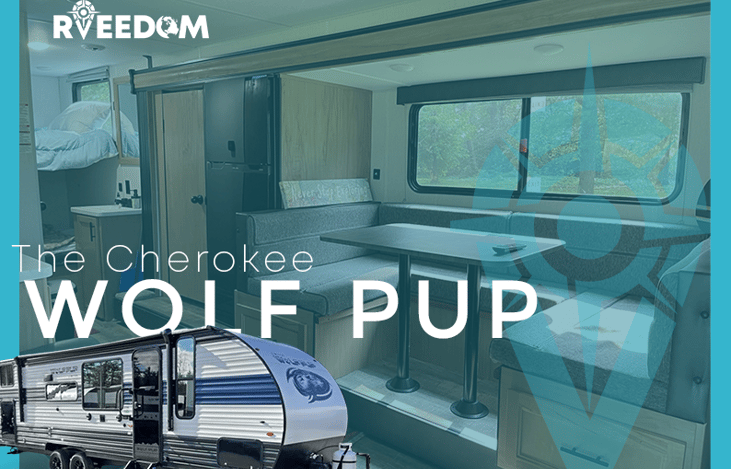 The 2023 Forest River Cherokee Wolf Pup 25JB has all the awesome features you need for your next adventure. It can sleep up to 10, with big bunk beds in the back, a private front bedroom, and even a U-shaped dinette that converts into a cozy bed for two.