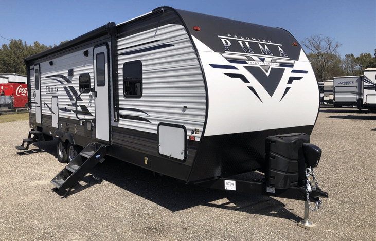 28’ Family sized camper ready for your next outdoor adventure! Comes with just about everything you need. Pack your food, clothes, and GO! The kitchen has a refrigerator, 4 burner stove, microwave, and good size sink for easy cleanup. Fully stocked with utensils, plates and glasses, pots and pans, and more for your use.