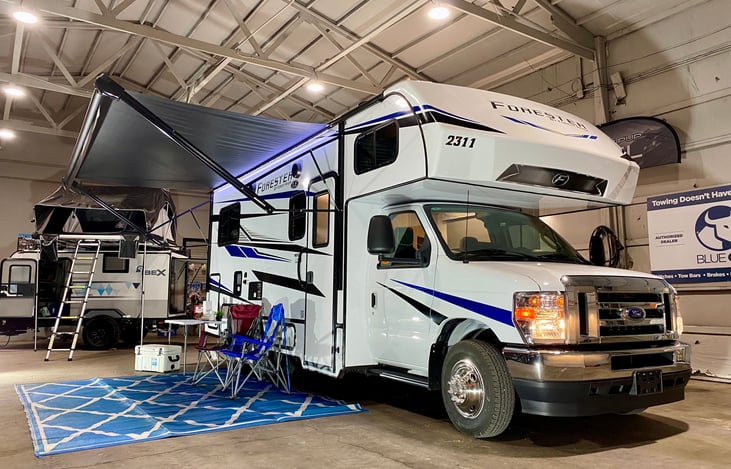 Take a short weekend trip, or venture cross-country in this small yet spacious Motorhome Rental. Maneuver through town easily with the short wheel base and backup camera. Sleeping is great with the upgraded Serta Mattress. Cook a delicious meal in the full size kitchen and enjoy it outdoors under the shade of the 16′ power awning with LED Lighting.