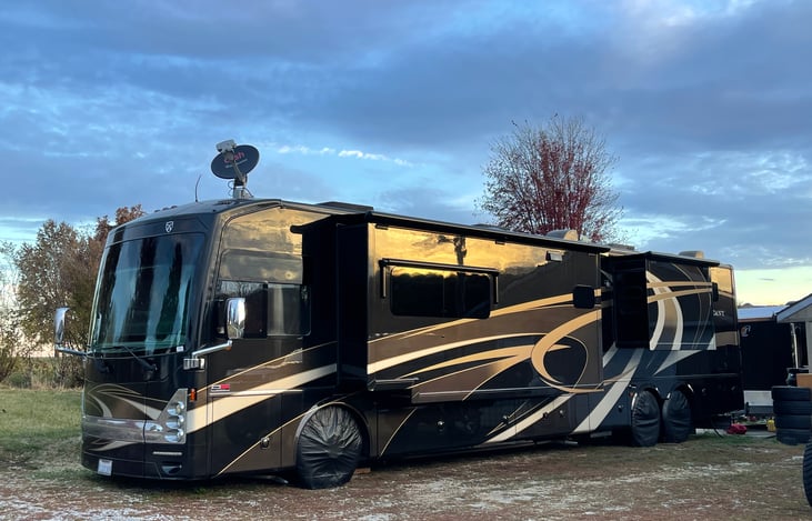 Our Thor Tuscany is a home away from home. When we brought it we had it on the road the next week. We really love it!! It’s really spacious in living area it has a 65 inch TV and surround sounds ,DVd and satellite . We have everything you need if you were in your home. The bathroom includes a walk-in shower and lots of cupboard space. The kitchen provides residential appliances and stocked with...
