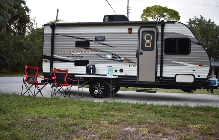 This 2017 StarCraft Autumn Ridge 18BHS has room for 5 but would be more comfortable for a couple or a small family. The travel trailer is cleaned inside and out after every visit and all surfaces are sanitized for your safety. See list below for included items and add-ons.