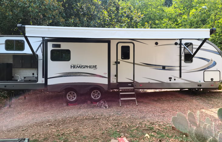 Owe Hemisphere Is GREAT for families!! Has privet bunkhouse for the kids or for couples to have privacy. Upgraded mattress in master. Has two 40 gal. gray water tanks. 1 40 gal black water tank. Has a BIG island in kitchen. Two A/C units.