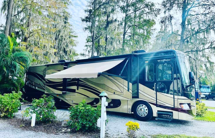 This is a primarily a delivery and setup stationary rental. Vacation in our 43 foot full size, 4 slide luxury RV. This big rig has the feel of home with a spacious interior and many of the amenities you have in your own home. Lounge in your own private campsite of choice and breathe in the fresh air. Central Florida has so many vacation spots to explore.