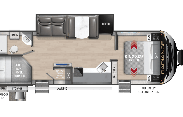 Perfect RV for a family with kids. Roomy interior with bunk beds and two TVs. Master has a RV King short bed.