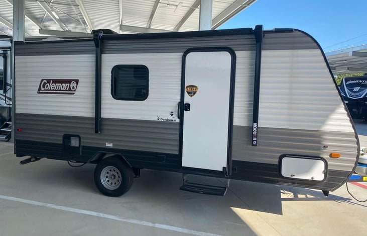The Coleman is the Perfect size to load up and enjoy the great outdoors. Can sleep up to 5 with sofa bed, a bunks available. It has a kitchen , the backup camera with Solar and Unlimited 5G Internet & Wifi available (with Fee)