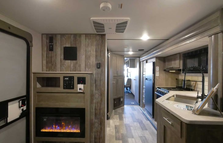 Love the layout! Corals Trailer is brand new its Very spacious and clean. It fits a 4 seat rzr but just make sure u load it with stock tires to clear the top bunk. Everything worked and the kitchen slide out was great. Coral was awesome she was super nice and flexible with the pickup and drop off. Recommend 10/10. Will definitely rent from her again. Thank you, coral.