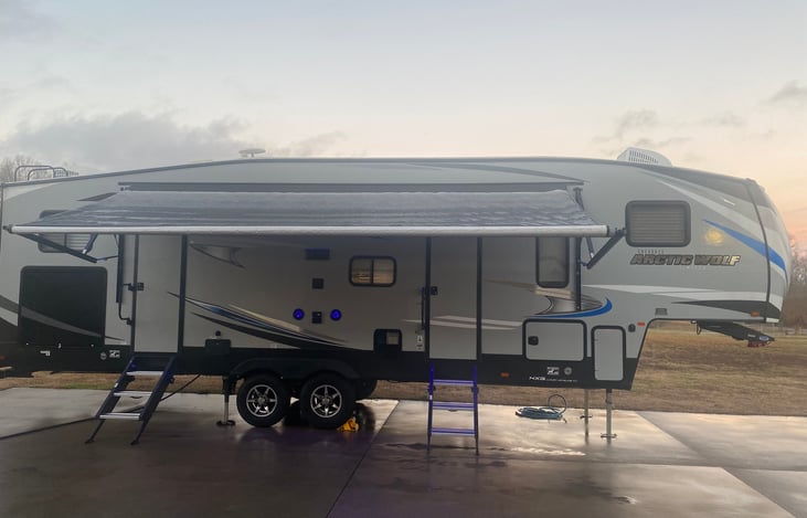 Bring the family out and enjoy our 2019 Forest River Arctic Wolf 315TBH8 Bunkhouse . This 5th wheel has 3 slide outs, sleeps 7 comfortably. It includes a master bath with roomy shower and additional 1/2 bathroom for kids or guests with 2nd exterior entrance.