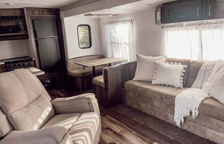 Come relax in your home away from home. This camper is newly renovated to feel more like a home instead of a trailer. Inside you can find a heated and massaging recliner. Kid friendly with 2 cozy bunks. Has a comfortable true queen size bed unlike those stiff normal camper beds. Comes with everything you need to camp minus your groceries. Let us help you make some wonderful camping memories.
