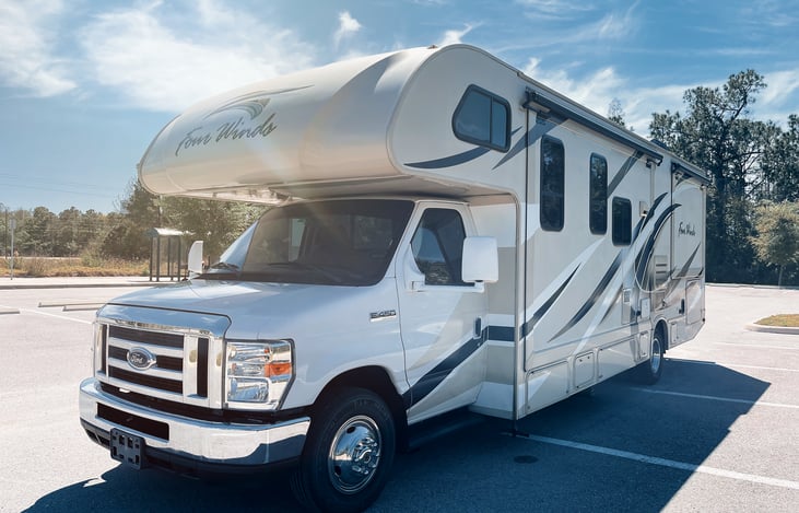 RVNighter is a 2017 Thor Four Winds 29ft class c motor home. She's like new, very easy to drive with all the comforts of home on the go. Featuring a fully equipped kitchen which includes a double sink, fridge, 3-burner stove with an oven and overhead microwave and we provide all the kitchenware needed (utensils, pots/pans, coffee maker, rice cooker etc).