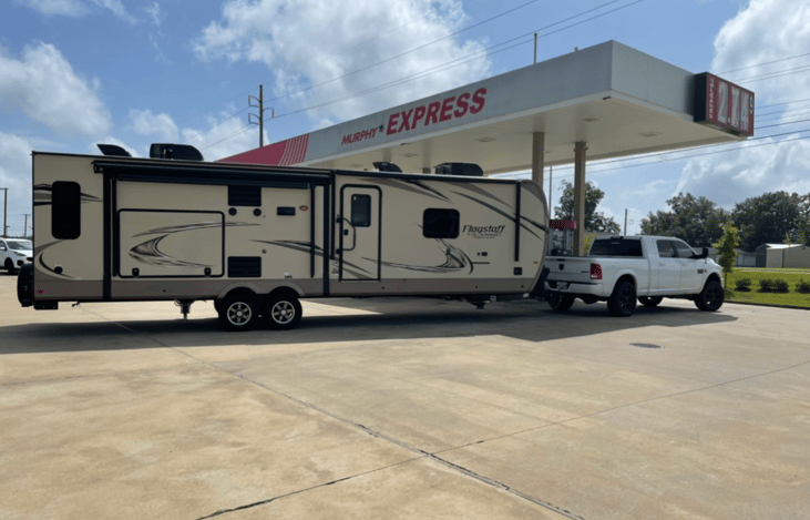 2018 Flagstaff classic. Comfortable and spacious. Hotel king size bed with linens included. Pull out couch +comfortable air mattress. Two recliners/love seat. Full bathroom with stand up shower “towels/rags” included. Tv in living area and bedroom. Full kitchen with dining. Outside kitchen including stove, sink, and refrigerator. Enjoyable for family and fun. Even as a weekend getaway.