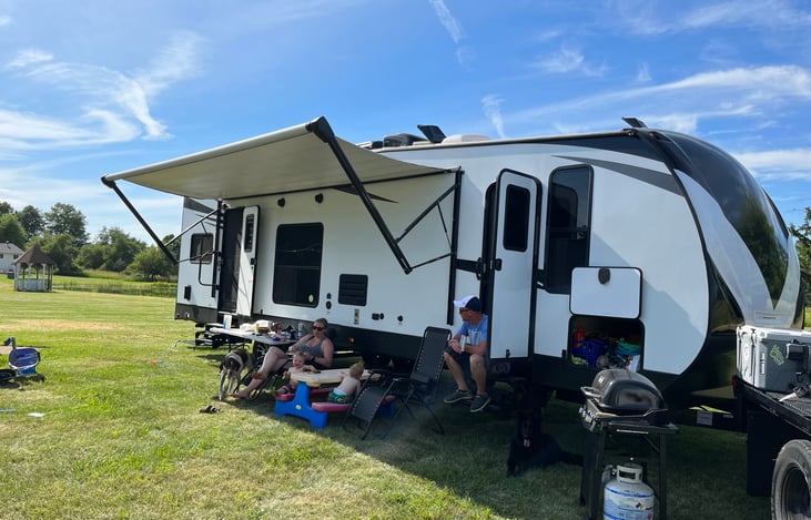 We are the Birds! We love anything outdoors! From hiking, mountain biking, snowboarding, snowmobiling, dirt biking, hunting, fishing, kayaking, tent camping or Trailer camping, you can find us outdoors! We are happy to share our “home away from home” to help you enjoy the outdoors also! 36’ long with a king bedroom, queen sized bunk beds in the rear, and the dinner table transforms into another s...