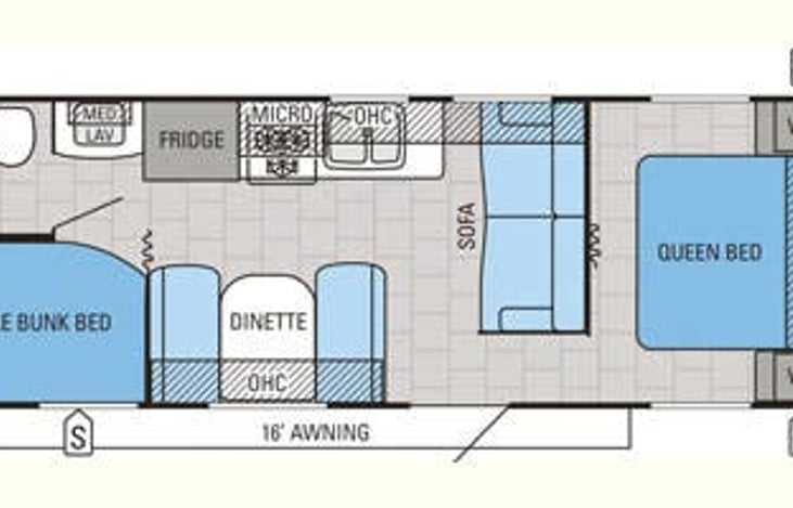Our Jayflight is awesome, her name is Sydney. Huge slide that opens up the entire living area (couch and dinette on slide). There is a front queen size bed with curtains for privacy and a second TV mounted to the wall. Rear of trailer has two bunks that are extra large. Both dinette and couch fold into beds.