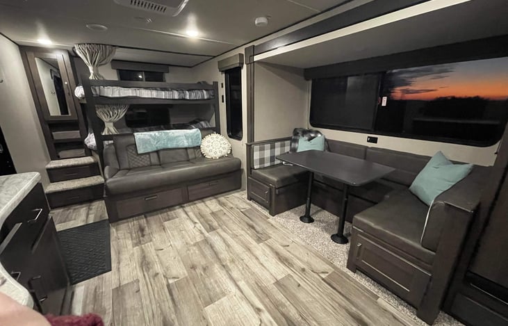 2023 spacious Travel Trailer with a luxury feel. When you rent from us you get a fully stocked Travel trailer so that all you need to bring is family/friends, clothes, food and drinks.