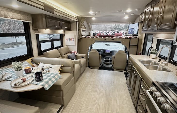 Ready to take your family on the road in style and comfort? Meet ‘Serenity,’ a top-off-class RV packed with everything you need for an unforgettable adventure!