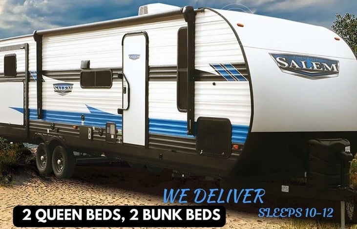Hi, my name is Jill. I welcome you to experience camping in Luxury and Style with our newest addition to our fleet! Load up the family and start your next camping adventure of your dreams. Salem by Forest River, is a 2022 Luxury 36’ Bunkhouse Travel Trailer.