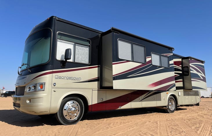 Mileage and generator hours that are included in a rental vary by listing. You can view the nightly mileage and generator hours that are included when renting this RV, as well as fees for excess mileage and generator usage, in the Rates and Availability section.