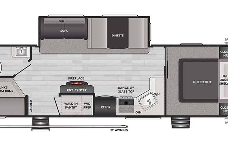 Vaulted Ceiling, Power Tongue Jack, Upgraded Pressed Countertops, Solid Step, LED Adjustable Power Awning, Central Control Panel, External TV Hookup/Mount, Bedroom TV Prep, Heated & Encl.