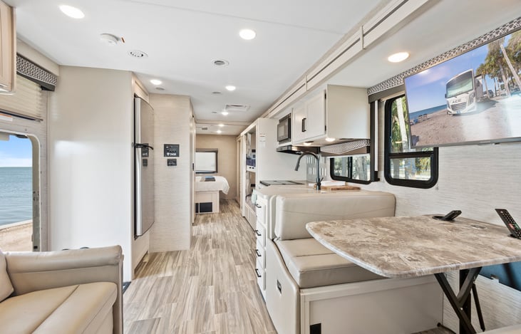 Mileage and generator hours that are included in a rental vary by listing. You can view the nightly mileage and generator hours that are included when renting this RV, as well as fees for excess mileage and generator usage, in the Rates and Availability section.