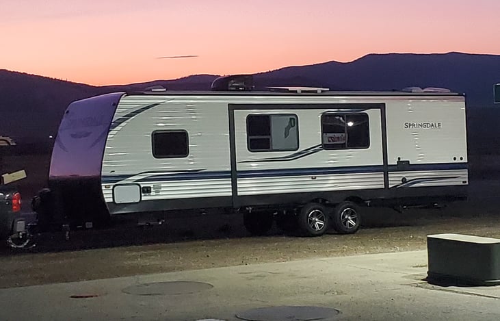 Moonlite in Montana is a 2022 Keystone Springdale bumper pull camper. Featuring a fully equipped kitchen that includes refrigerator, microwave, stove/oven, coffee maker, plates and utensils and pots and pans.