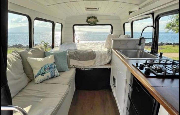 Aloha! Great experience!!!! We rented the campervan for a week and had amazing time. The experience is worth the price! The van is super functional with plenty of space and cupboards. We used the well equipped kitchen - stove, fridge and sink, the cooler as well, the shower was very good and snorkeling equipment as well as water board a bonus.
