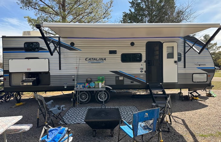 2022 Coachman Catalina Legacy edition that can sleep up to 10 people with everything you need to enjoy the outdoors in comfort! This RV has a master bedroom with a queen bed and two separate closets. There is a second room with three bunk beds, 2 fold out toddler beds, and a closet.