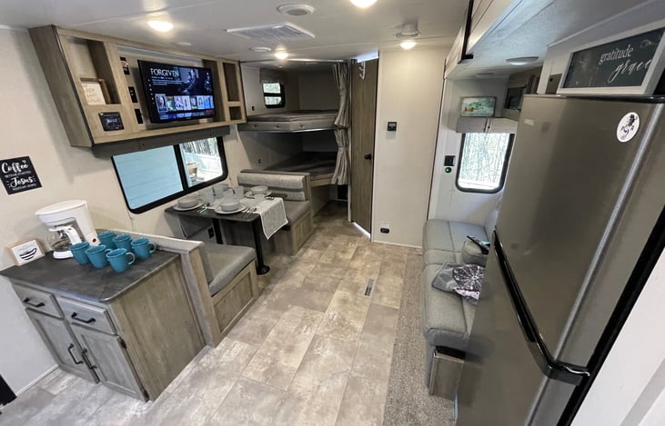 We had a great time in this RV! It was our first time in an RV and JP did a thorough walk through. He was very responsive and accommodating. There was a slight miscommunication but he ensured to have everything covered. Our kids loved camping at Stone Mountain! I would only suggest a broom/dustpan, outdoor rug, and written instructions for set up/breakdown be included with the rental.