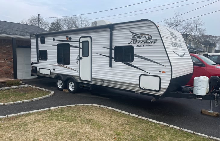 Up for rent is is our 2017 Jayco Jay Flight SLX 264BHW this camper has a front bedroom with a queen size bed. It has a jackknife sofa that folds down to a bed as well as the dinette. It has bunks in the back with a rear bath and a separate sink outside the bathroom.