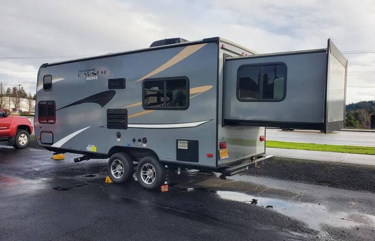 The Launch Mini is the perfect weekend get-away trailer for couples or families with small kids. It only weighs ~4000 lbs (dry weight) and is 22 feet long which means most SUVs and trucks can tow it and getting in and out of a camp site should no problem! With a Queen bed and bunk house, it can sleep 4 adults comfortably.