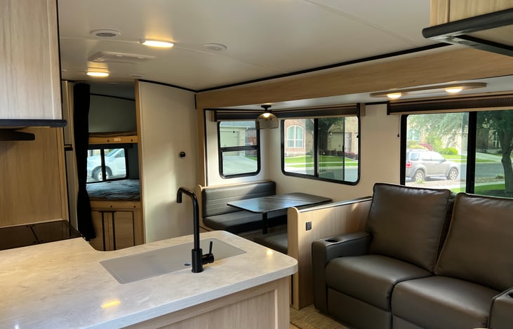 Great rental experience! Excellent communication with Jessica. Highly recommend. They delivered the RV to Camp Fimfo at Canyon Lake for a very reasonable price. Kept us updated and delivered it right on time. They spent time to get the trailer set up right where we wanted. Leveled and stabilized it very well. Hooked everything up. All cords hoses and connections looked new.