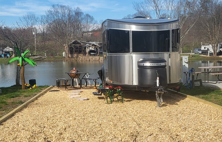 Located in the Waterside at Blue Ridge RV resort, minutes away from Lake Blue Ridge and downtown Blue Ridge, Flamingo Ridge offers a brand new 2022 Basecamp 20X - Airstream's best selling RV! Flamingo Ridge is a unique glamping experience for those seeking a little adventure during their visit. Sitting beside a small lake, the lot includes a Breeo fire pit, adirondack chairs, picnic table and grill. The only Airstream available in Blue Ridge. Come and live the Airstream lifestyle!