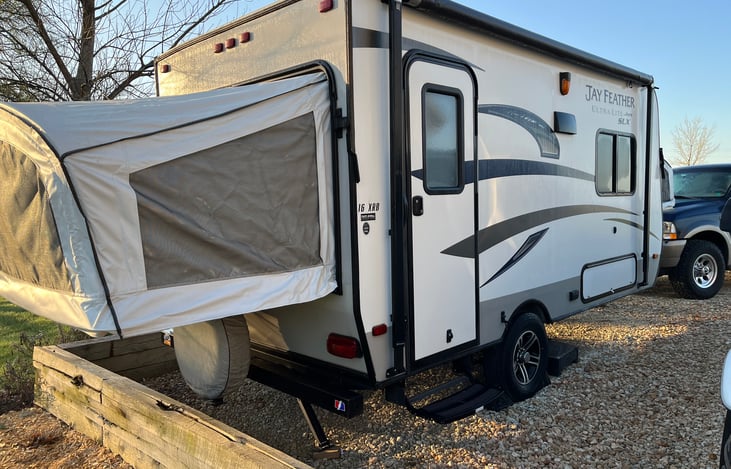 Ultra-Light Expandable Travel Trailer, Sleeps 6 w/ Pop-out Tent beds.....great for that "outdoor" pop-up camping experience with the convenience of a hard-sided camper. Large Refrigerator, AC/Heat, Bathroom w/ Shower, Easy setup/teardown with owner provided checklist. Tows easy behind almost any vehicle and sets up in under 30 minutes.