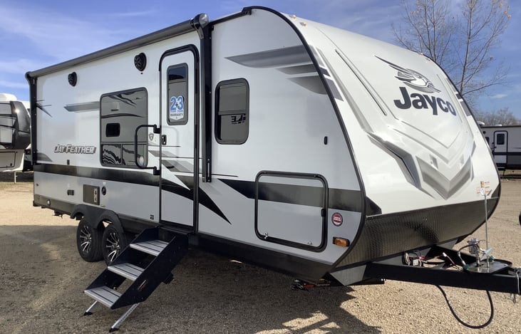 This is a BRAND NEW 2023 trailer. It is the perfect “Couples Trailer.” It has the popular Modern Farmhouse interior and sleeps 2 Adults and 2 small kids. Towing is safe and comfortable as the trailer only weighs 5,185 pds.
