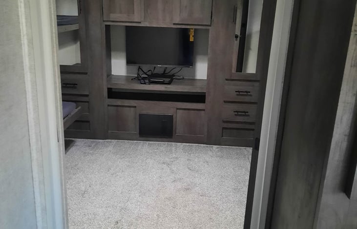 Home away from home! All inclusive package with everything you'll need to have an amazing camping adventure! You'll have plenty of room for the family with the queen master bedroom, the sofa conversion, and the bunkroom that sleeps 5. Outdoor kitchen, tons of storage space, awning, and more! Xlarge bunkroom with double slide-out, SO much space for the kids to play! Check out our amenities list!