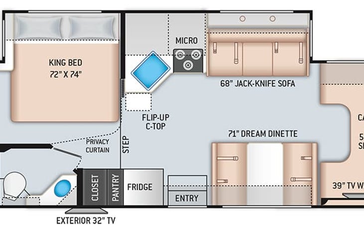 Best RV in Town. Like new Class C. Only has 1998 miles on it. The RV has a nice king size bed, couch bed, above the cab queen size bed and the dining table folds done into a single bed. RV has a electric awning with outdoor TV with sound bar. The generator has electric start. Renters can use 3 hours of the generator for each day rented. Extra hours will be charged at the rate of $2.00 per hour.