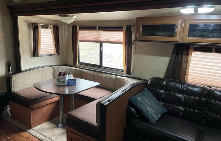 This is the 3rd RV we’ve rented (after selling our own 3 years ago), and it was absolutely the best rental experience we’ve had. We had Josh deliver and set up the trailer. What a lovely set up. Outdoor rug, table with tablecloth, 2 kayaks, multi outlet extension cord. Inside is stocked to the hilt. Seriously, anything you could ever need. Plus, 8 Spring Grove sodas chilling in the fridge.