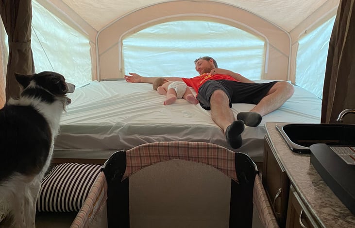 Hi! Our pop up camper makes for an easy and fun weekend. It comes packed with full of everything you’ll need along with a lot of storage. It is garage kept and pet friendly. We keep it clean and up to date. No issues and easy to put up and down.
