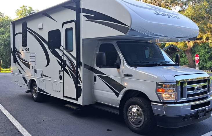 This 2022 24B Jayco Redhawk has everything you need for a local or long haul adventure. Enjoy traveling in a spacious, comfortable, and clean RV with amazing low mileage. Sleeps up to 6 comfortably with a walk around queen bed in a private room, queen bunk above driving chairs and a convertible dinette that could fit a 6th person if two small children share.