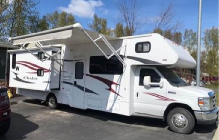 You will have plenty of space to take family and friends in the Winnebago Chalet 31. This class C motorhome features two slide outs, a rear bedroom, two single bunk beds, and a den/bunk area above the drivers area.