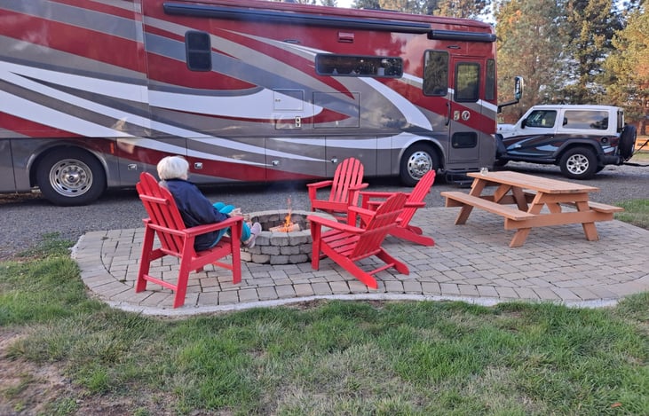 Comfortable, roomy and easy to drive. Fireplace to keep you toasty on those cold nights. Chairs and grill included. Cooking utensils, cutlery, keurig (for that early morning coffee) and dishes. Towels and sheets, too. It's a home away from home. Small pets are OK