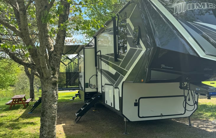 New 2022 Grand Design Momentum. 2 bathrooms. 1 shower. Has residential appliances. Tow hauler with bunk bed in hailer area with happy jack system. 4 tvs. Side porch with tv on the porch. Sound system with speakers on porch as well. Has literally everything you need.