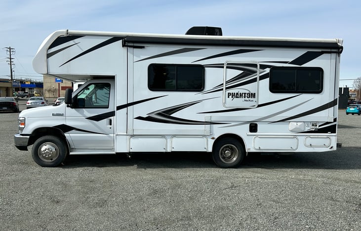 This 2020 Nexus Phantom 25-p's small size is offset by the incredible full wall slide out that really allows this little RV to live large!!! There are beautiful drivers and passengers seats and everything you need to travel in comfort is inside this RV. Generator, Roof Air, Dash Air, Furnace Heat. Dash Heat.