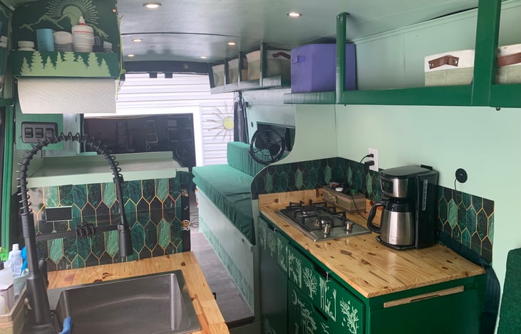 Van life enthusiasts will love this custom built van. Designed by a couple that loves to hike, climb, bike and ski.
