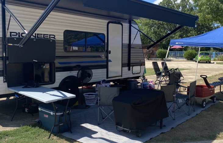 Our RV is in incredible shape! It sleeps 5 comfortably with the potential for more ( if they are children ). Two double bunks in the rear of the RV, a queen murphy bed in the front and a table bed combo in the middle if needed. The AC blows cold or turn on the heat to stay cozy warm! Feel free to use the microwave inside or the BlackStone that is included outside to make your meals.