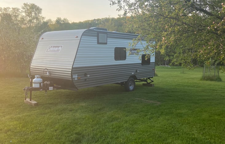 Stay in our adorable, just-the-right-size, new camper. There is a queen sized bed with a memory foam mattress topper, two twin bunk beds, and the dinette set folds into a bed. Comfortably sleeps 5 people, potentially up to 6 if you have little kids.