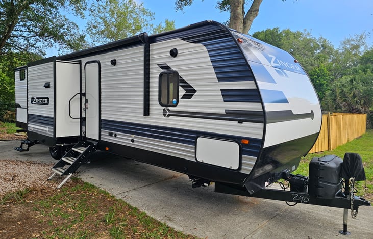 Welcome aboard and get ready to have an experience on the high seas! This is Kraken 4! 37 feet of anything you will need to have an amazing experience. Fireplace, blue led lights in the ceiling, smart tvs in every room, 2 bathrooms...thats right 2 bathrooms. Fully loaded kitchen with everything included! You will not be disappointed in this travel trailer!
