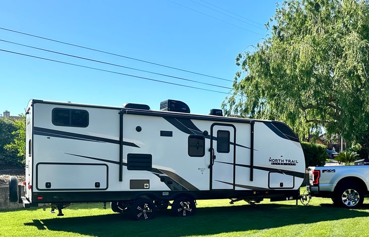 Our family of 4 would like to introduce you to Liberty. Liberty is our freedom trailer - allowing your family the freedom to explore this beautiful state. Liberty is a 2023 North Trail bunk house trailer.
