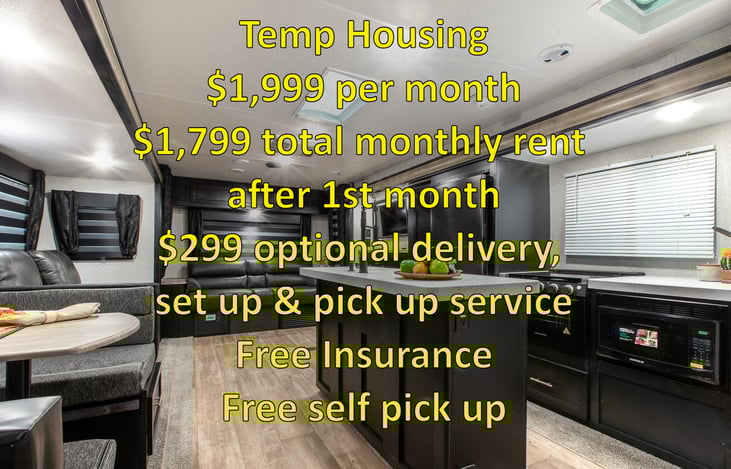 Temp Housing. $1,999 per month. $1,799 total monthly rent after the 1st month. $299 optional delivery, set up & pick up service. Free Insurance. Free self pick up.
