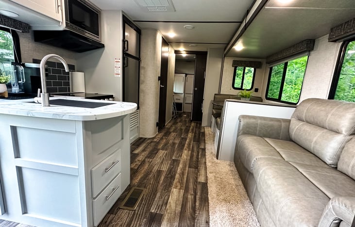 The trailer was very clean and the delivery went smoothly. We appreciated that it included bedding, bath towels, a Keurig coffee maker and a griddle. Highly recommend!
