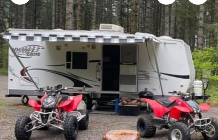 Mahalo and welcome to our little piece of fun. Our 24 foot victory lane toyhauler has everything a little family needs that has lots of toys and needs to haul anthem and transform into a little home for you gettaway